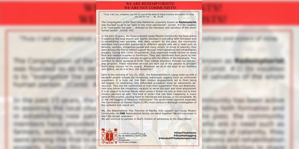 Mariing kinondena ng permanent Commission of the Association of Major Religious Superiors in the Philippines (AMRSP) on Justice, Peace and Integrity of Creation (JPICC) ang