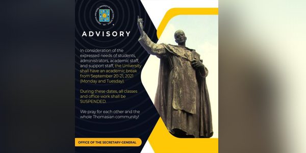 Pansamantalang sususpendihin ng Pontifical and Royal University of Santo Tomas ang klase at office work sa unibersidad mula sa ika-20 hanggang ika-21 ng Setyembre. Nasasaad