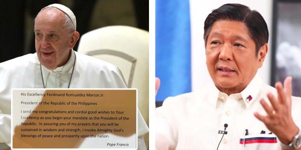 Nagpaabot ng pagbati ang Kanyang Kabanalan Francisco kay President-elect Ferdinand Marcos Jr. bilang ika – 17 pangulo ng Pilipinas. Sa mensaheng ibinahagi ni Papal Nuncio
