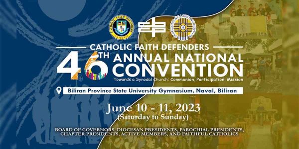 2,609 total views Inaanyayahan ng Catholic Faith Defender ang mga kasapi na makiisa sa 46th Annual National Convention. Ayon kay CFD National President Ryan Mejillano, ito