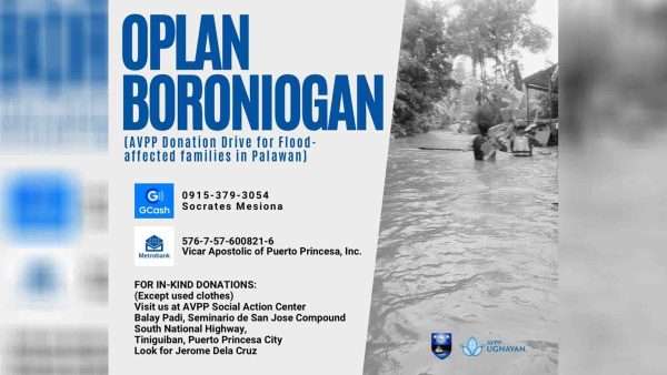 7,831 total views Patuloy na nananawagan ng tulong ang Apostolic Vicariate of Puerto Princesa (AVPP) para sa mga pamilyang naapektuhan ng malawakang pagbaha dulot ng shearline