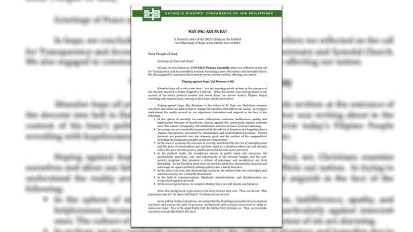 12,178 total views Pinaalalahanan ng Catholic Bishops’ Conference of the Philippines ang mananampalataya na nanatiling buhay ang pag-asang hatid ni Hesus sa sanlibutan. Sa pastoral statement