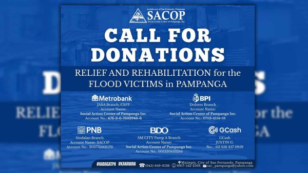 Umapela ng patuloy na tulong at suporta ang Social Action Center ng Arkidiyosesis ng San Fernando (SACOP), Pampanga para sa mga naapektuhan ng nagdaang sama