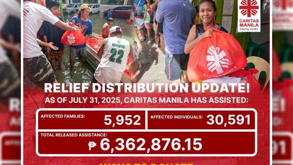 Umabot sa 30,600 katao ang natulungan ng Caritas Manila matapos ang pananalasa ng bagyong Crising, Dante, Emong at hanging Habagat sa National Capital Region at