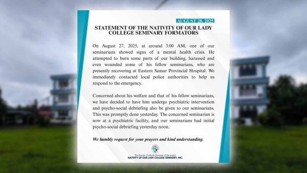 Nananawagan ng panalangin at pag-unawa ang pamunuan ng Nativity of Our Lady College Seminary sa Borongan, Eastern Samar matapos ng insidente na kinasangkutan ng isa