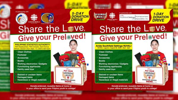Inaanyayahan ng Caritas Manila Segunda Mana Program ang mga Pilipino na makiisa sa mga idadaos na Segunda Mana Donation Drive. Una sa mga ito ay