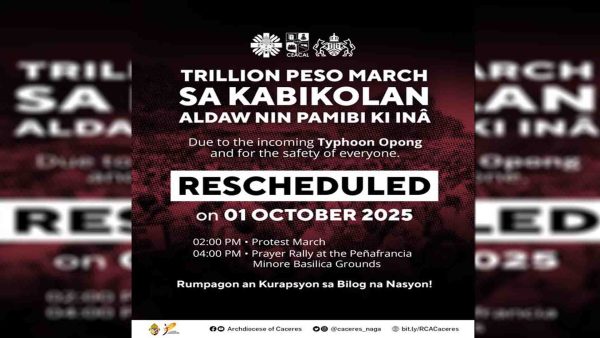 Pansamantalang ipinagpaliban ng Archdiocese of Caceres ang pagsasagawa ng lokal na bersyon ng Trillion Peso March sa arkidiyosesis bilang pag-iingat mula sa sama ng panahon