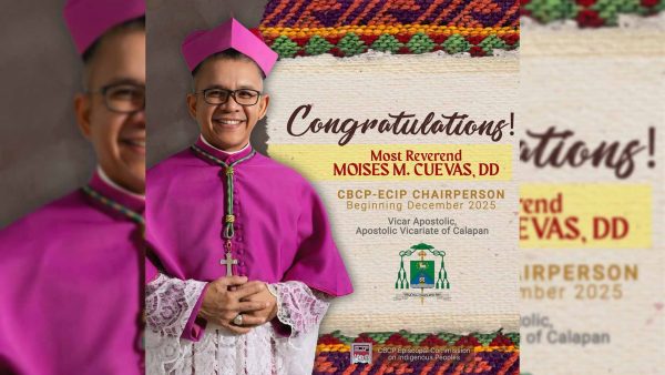86 total views Nagpaabot ng pagbati ang Catholic Bishops’ Conference of the Philippines-Episcopal Commission on Indigenous Peoples (CBCP-ECIP) sa pagkakatalaga kay Calapan Bishop Moises Cuevas bilang