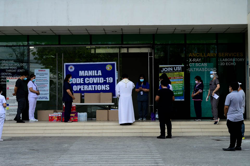 Bukod sa pagkain, tubig at medical aid, lubos na nagpapasalamat ang mga hospital workers ng Sta. Ana Hospital at Mandaluyong City Medical Center sa pagdiriwang ng misa sa kanilang pagamutan.