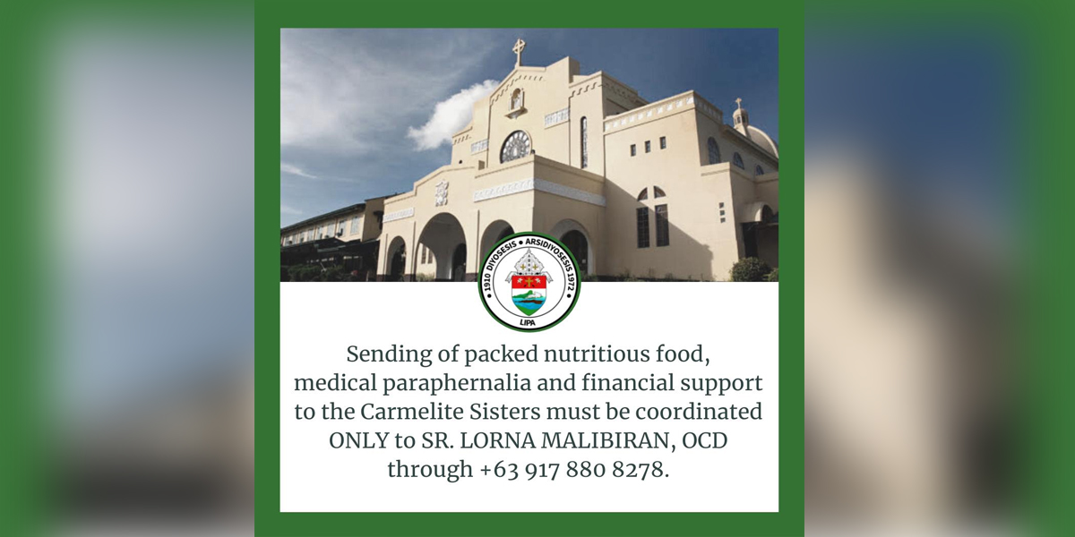 Nananawagan din ng tulong at suporta si Archbishop Garcera para mapunan ang pangangailangan ng mga Carmelite sisters sapagkat sila ay kasalukuyang naka-isolate at hindi maaaring lumabas o magpapasok sa monasteryo.