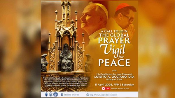5,101 total views Nanawagan si Virac Bishop Luisito Occiano sa mga mananampalataya ng diyosesis na makiisa sa pandaigdigang panalangin para sa kapayapaan sa pamamagitan ng pagdarasal