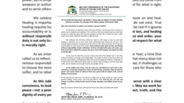 65,583 total views Nanawagan ang Caritas Philippines para sa isang makatarungan, mapagpalaya, at payapang kapayapaan nang walang paggamit ng armas, kasabay ng pagsalubong ng bansa sa