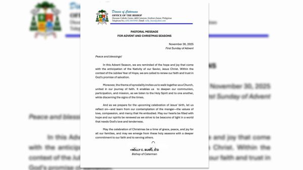 85,478 total views Hinimok ni Catarman Bishop Nolly Buco ang mga mananampalataya na pag-ibayuhin ang pag-asa at ipamalas ang pag-ibig ng Diyos sa kapwa habang naghahanda