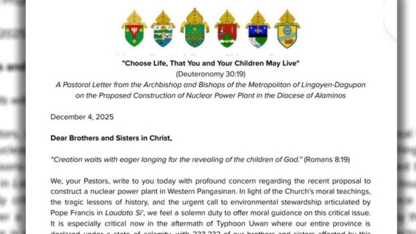 66,622 total views Mariing tinutulan ng mga obispo ng Metropolitan of Lingayen–Dagupan ang planong pagtatayo ng isang nuclear power plant sa Western Pangasinan, na sakop ng