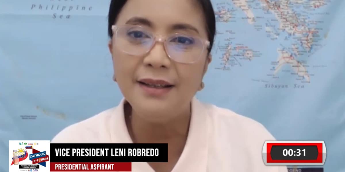 Si Robredo ang ika-pitong presidentiable na naging panauhin sa Catholic E-Forum na mapapakinggan at mapapanood Lunes hanggang Biyernes ganap na ika-walo ng umaga.