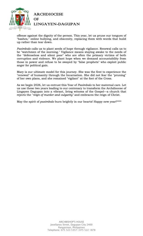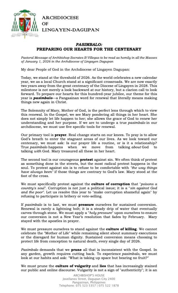 “As we begin the year 2026, a new chapter unfolds before us, a year designated as the “Year of Grace” within our journey as a synodal Church. This special year invites us to deepen our communion with Christ, to walk together in trust and humility, and to discern God’s will through actively listening and shared discernment,” ayon sa pahayag ni Bishop Buco.