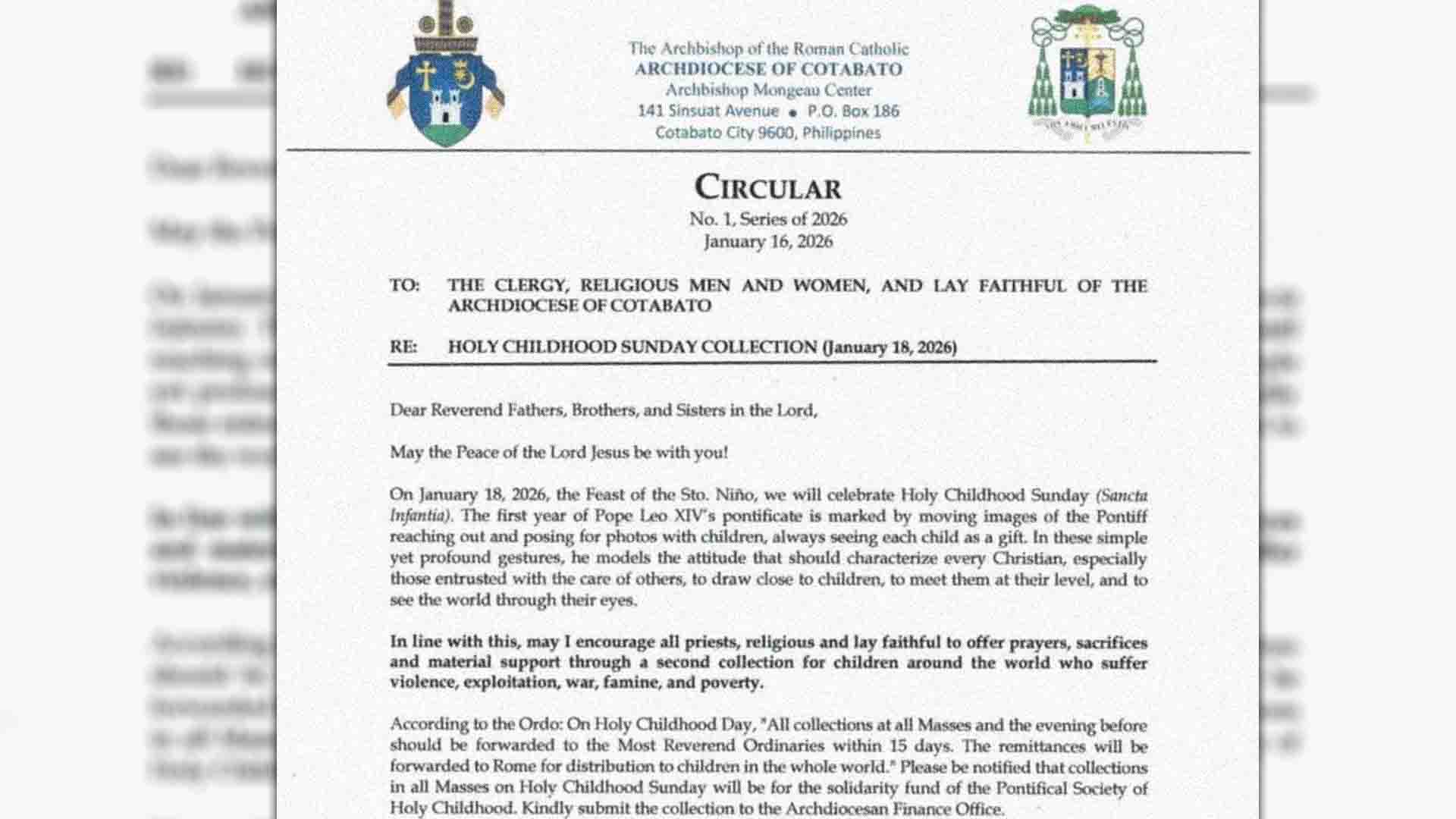 Bilang pakikiisa at panalangin, hiniling ng Arsobispo sa lahat ng parokya sa Arkidiyosesis ng Cebu na ialay ang lahat ng Banal na Misa sa itinakdang araw sa ika-16 ng Enero, 2026 para sa mga nasawi, gayundin para sa kanilang mga naulila at mahal sa buhay.