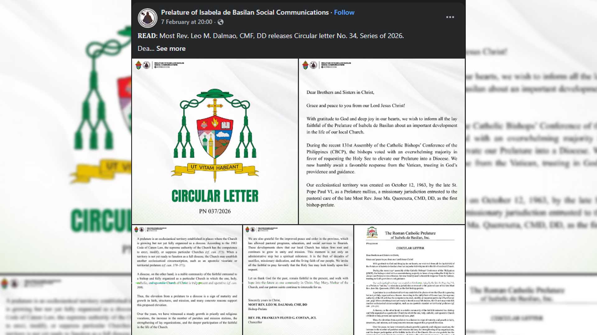 “Through the intercession of St. John the Baptist, our beloved patron of the Diocese of Kalibo, let us unite our minds and hearts in fervent prayer. For in prayer, we find our strength and our hope. Together as one people, may we humbly implore God to shield us from all harm, guard us from calamities, and grant us deliverance from every trial and suffering.” Bahagi ng panawagan ng Diyosesis ng Kalibo.