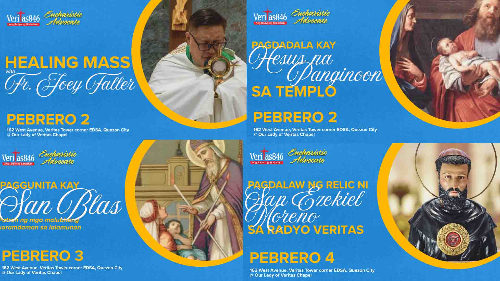 Sa February 2, sa Kapistahan ng Pagdadala kay Hesus na Panginoon sa Templo, pangungunahan ng Kamay ni Hesus healing priest na si Fr. Joey Faller ang banal na misa at healing sessions alas-dose ng tanghali.