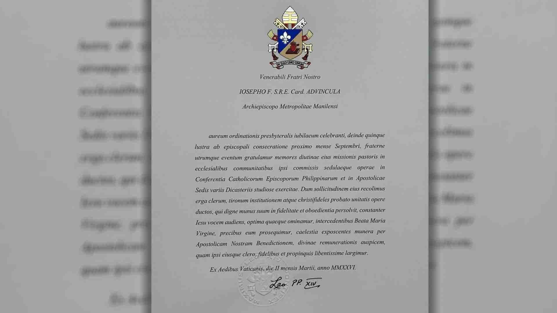 Kinilala rin ni Pope Leo ang pamumuno ni Cardinal Advincula sa Simbahan, partikular sa pangangalaga sa kaparian, paghuhubog ng mga seminarista, at pagpapatatag ng pagkakaisa ng mga mananampalataya.