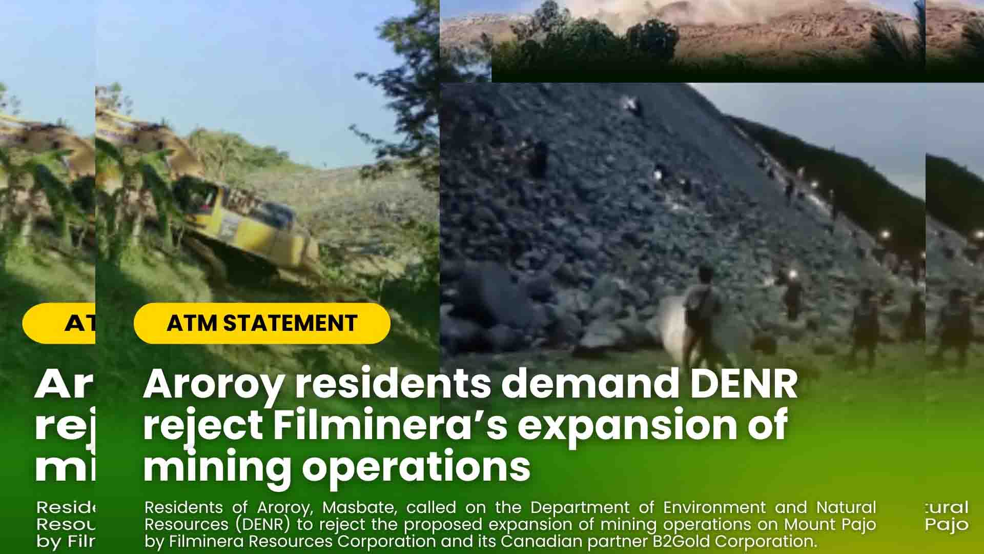 Nanawagan ang mga residente ng Aroroy, Masbate sa Department of Environment and Natural Resources (DENR) na isantabi ang planong pagpapalawak ng pagmimina ng Filminera Resources Corporation katuwang ang B2Gold Corporation sa Mount Pajo.