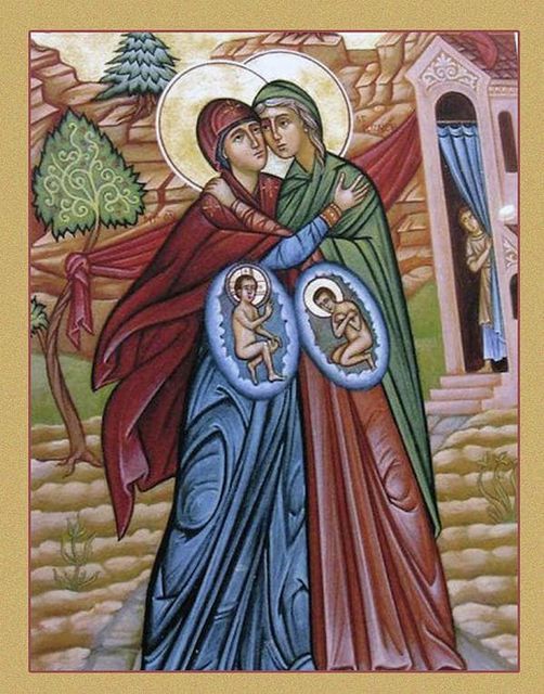 Kadalasan, mga eksena ang mga icons sa buhay ng mga disipulo at mga apostol lalo na sa mga ebanghelyo. May tawag sila sa ganitong porma ng religious art—iconography, na ang literal na kahulugan ay “writing an icon,” hindi “painting an icon.” Siguro dahil ang inspirasyon para sa kanila sa paggawa ng mga imahen ay nagsimula, hindi sa pintura at kahoy, kundi sa literatura. Isang magandang halimbawa ang ating Gospel reading ngayon tungkol sa eksena ng Visitation, ang pagdalaw ni Mama Mary kay Elisabet ayon kay San Lukas. (Kaya siguro siya tinatawag na oldest iconographer.)