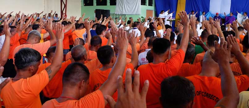 Taun-taon pinangungunahan ni Cardinal Tagle ang banal na misa sa New Bilibid Prison bilang bahagi ng pagdiriwang sa pasko na inoorganisa ng Caritas Manila Restorative Justice Ministry.
