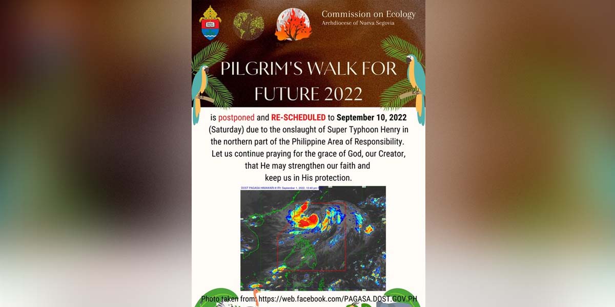 Ipinagpaliban ng Commission on Ecology ng Archdiocese of Nueva Segovia ang nakatakdang Pilgrim’s Walk for Future 2022 dahil sa banta ng Super Typhoon Henry sa hilagang bahagi ng bansa.