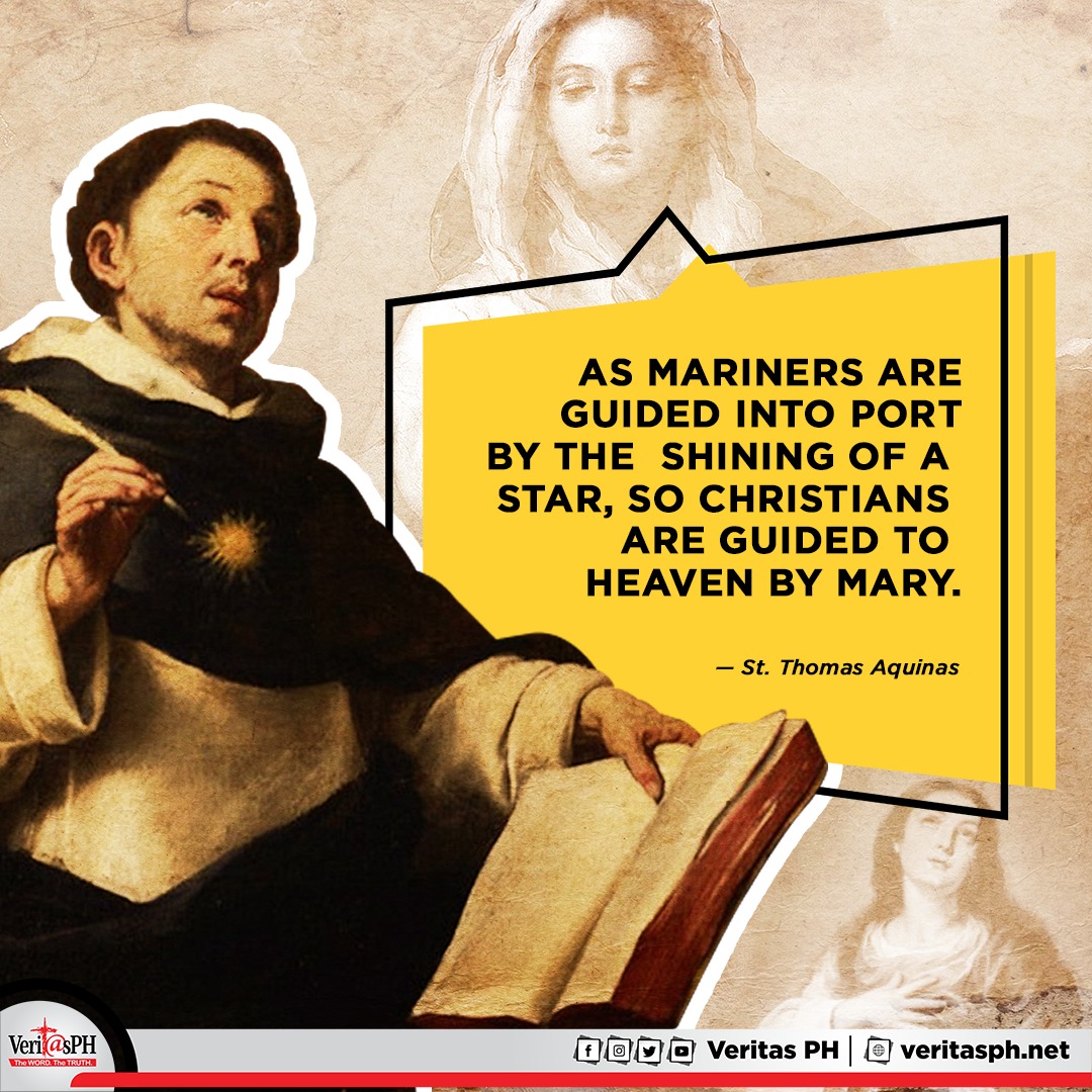 Whatever our difficulty, Thomas counsels us to pray to Mary, “for in every danger you can obtain salvation from this glorious Virgin [and] in every work of virtue you can have Mary as your helper [for] she truly says of herself, ‘I am the Mother of fair love, and of fear , and of knowledge, and of holy hope, in me is all grace of the way; in me is all hope of life and of virtue.” (Ecclus 24:24)