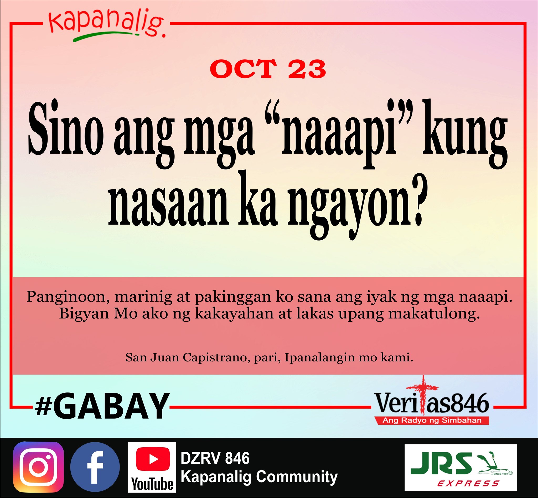 63,387 total views Mga Kapanalig, nakasaad sa Galacia 6:2, “magtulungan kayo sa pagbuhat ng pasanin ng bawat isa.” Sa kabila ng krisis na kinahaharap ng ating