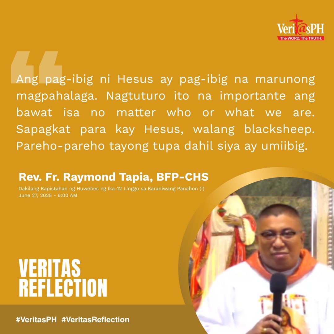 #VERITASREFLECTION: “Walang pinipiling tao ang Panginoon dahil pantay-pantay ang pagtingin Niya sa lahat. Ang pag-ibig Niya ay ‘sing lawak ng karagatan at hindi tumitingin sa nagawang kamalian ng sinumang nagnanais sumubok na sumilong sa kanyang kabanalan.
