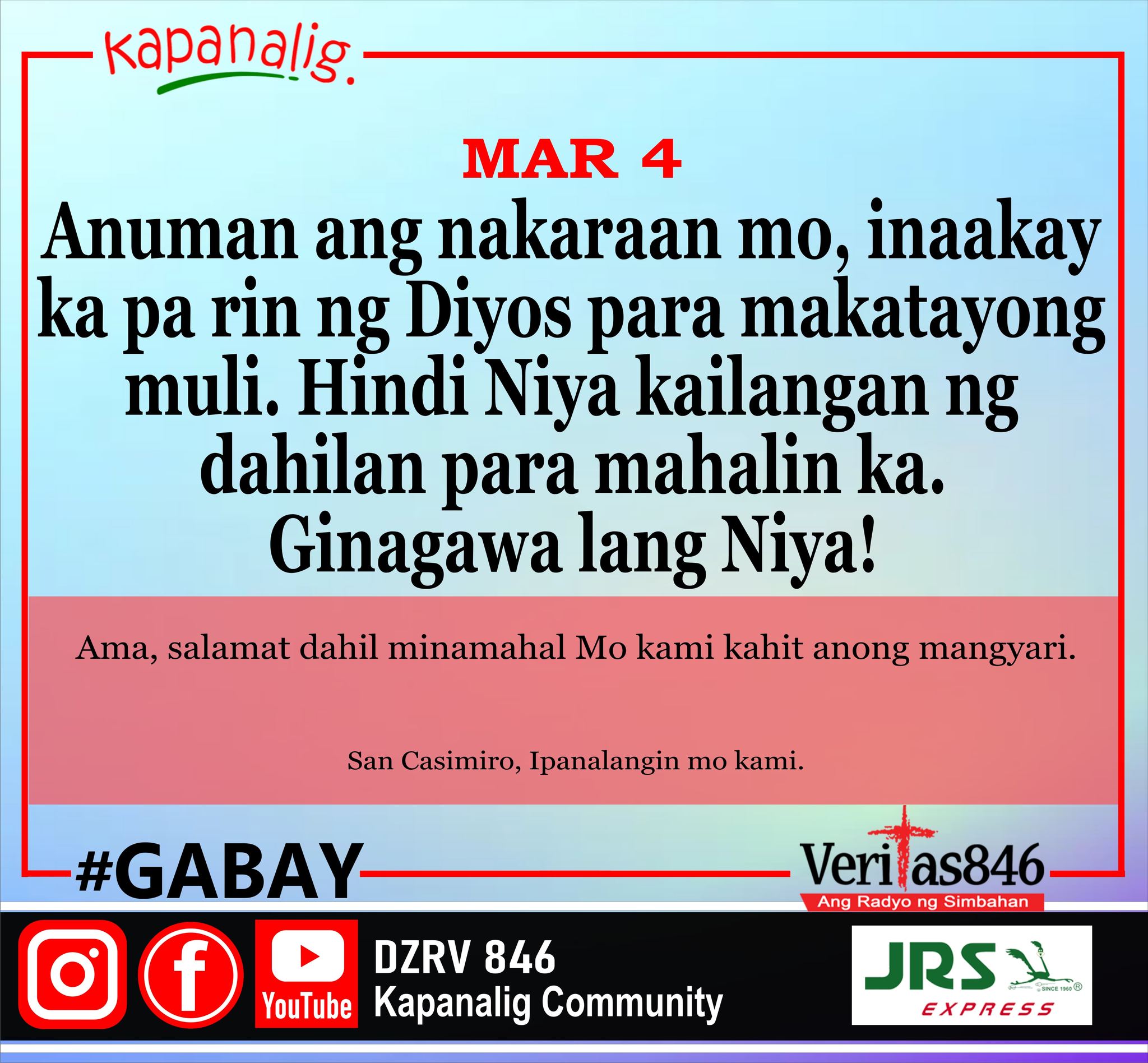 67,915 total views Mga Kapanalig, nakasaad sa Galacia 6:2, “magtulungan kayo sa pagbuhat ng pasanin ng bawat isa.” Sa kabila ng krisis na kinahaharap ng ating