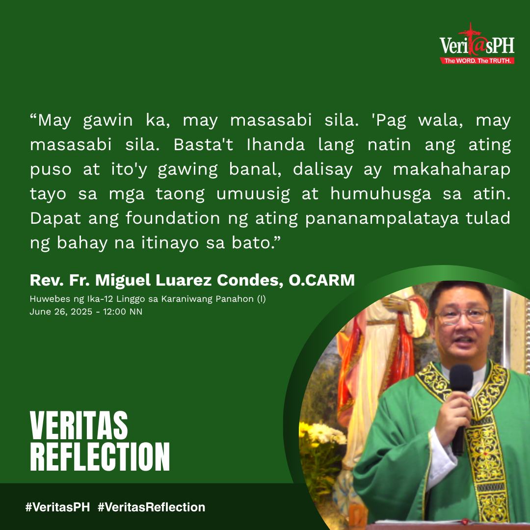 #VERITASREFLECTION: “Ang lakas ng ating loob ay nanggagaling kay Hesus. Kapanalig, mayroon mang umuusig sa atin— sitwasyon man ito o tao laban sa pagpapalago natin ng pananampalataya sa Diyos, ating na lamang itong ipanalangin at ialay sa kanyang kabanalan. Basta’t mayroon tayong pananampalataya sa Kanya, ang mga taong umuusig sa atin laban sa kaharian ni Hesus ay hindi magtatagumpay kailanman. Tatagan natin ang ating loob at ipanalangin ang mga mang-uusig kay Kristo Hesus.”
