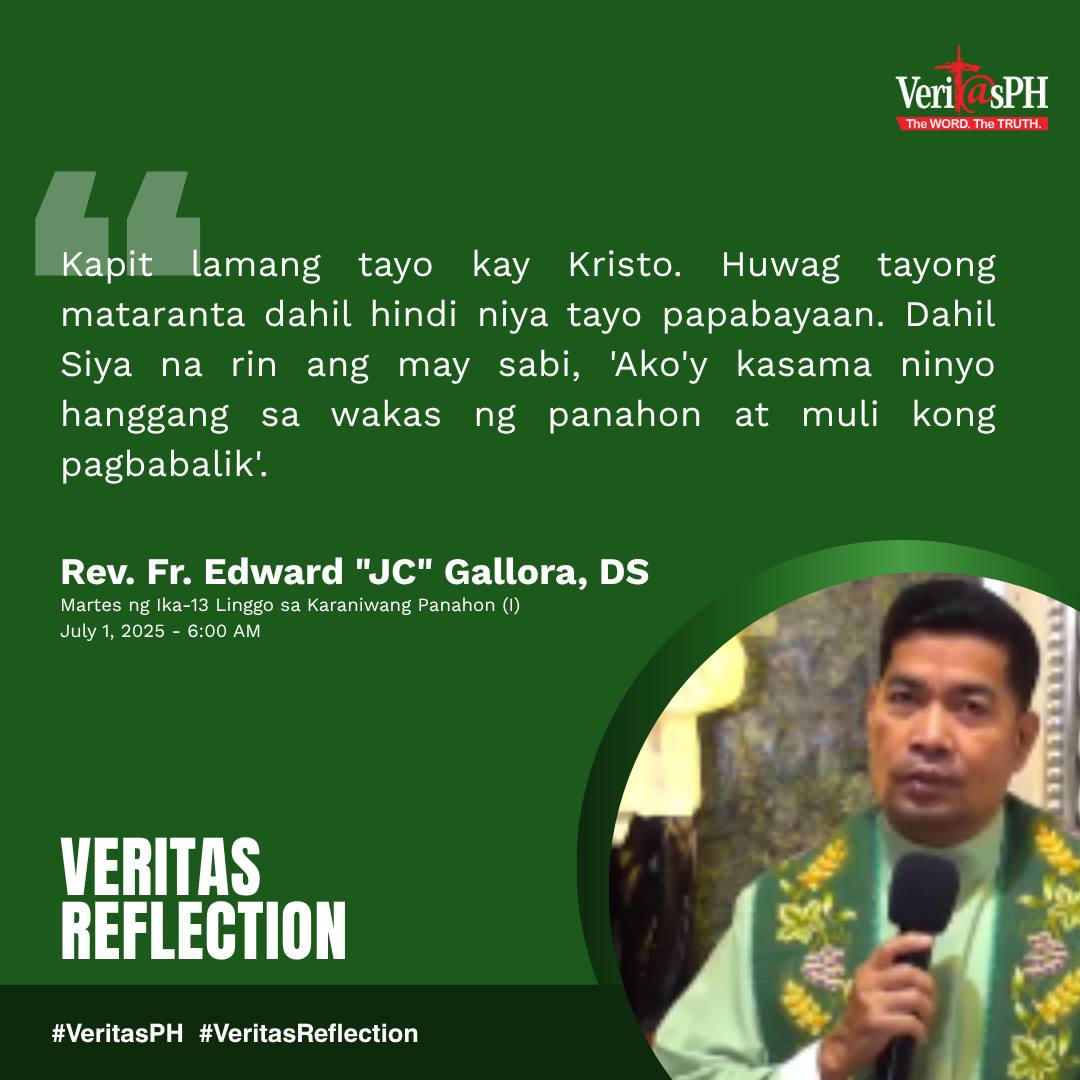 #VERITASREFLECTION: “Hindi tayo papabayaan ng Panginoon. Kaya naman ating ipagdasal natin na hindi takot ang manguna sa atin, bagkus, isang malaking pananampalataya na kayang-kaya tayong protektahan ng Diyos sa lahat ng sitwasyon.”