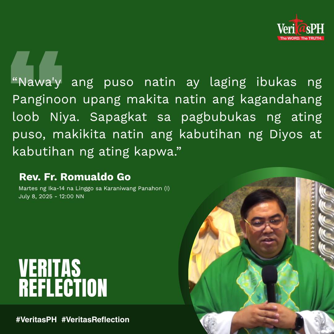 #VERITASREFLECTION: “Nawa’y ang puso natin ay laging ibukas ng Panginoon upang makita natin ang kagandahang loob Niya. Sapagkat sa pagbubukas ng ating puso, makikita natin ang kabutihan ng Diyos at kabutihan ng ating kapwa.”