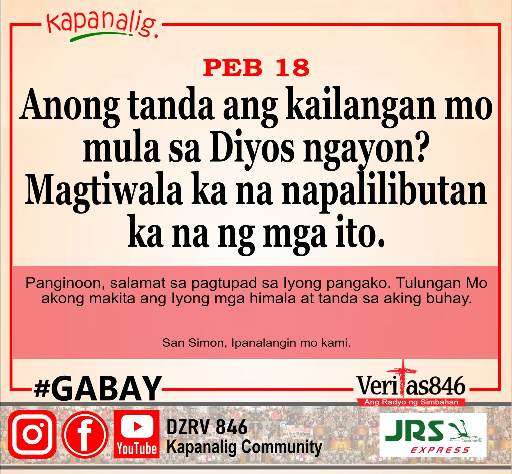310,641 total views Mga Kapanalig, nakasaad sa Galacia 6:2, “magtulungan kayo sa pagbuhat ng pasanin ng bawat isa.” Sa kabila ng krisis na kinahaharap ng ating