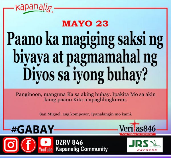 625 total views Martes sa Ika-7 Linggo ng Pasko ng Pagkabuhay MASS PRESIDER: Rev. Fr. John Paul Jickain [fb_plugin video href=https://www.facebook.com/DZRV846/videos/140385185700983] [give_form id=”72114″ show_title=”true” show_goal=”false” show_content=”none”