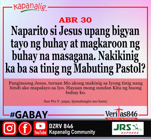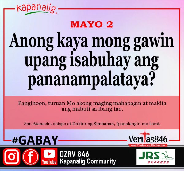 1,900 total views Sabado sa Ika-4 Linggo ng Pasko ng Pagkabuhay Mga Gawa 13, 44-52 Salmo 97, 1. 2-3ab. 3kd-4 Kahit saa’y namamalas tagumpay ng Nagliligtas.
