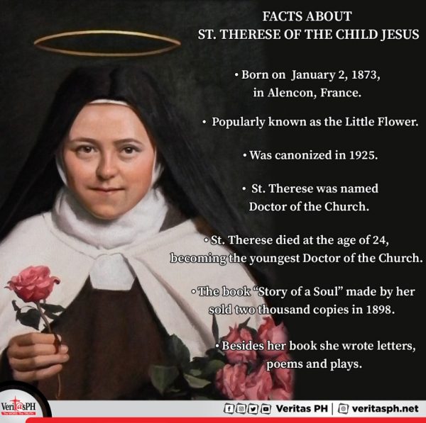 1,512 total views • Born on January 2, 1873, in Alencon, France • Popularly known as the Little Flower • Therese of Lisieux was canonized in