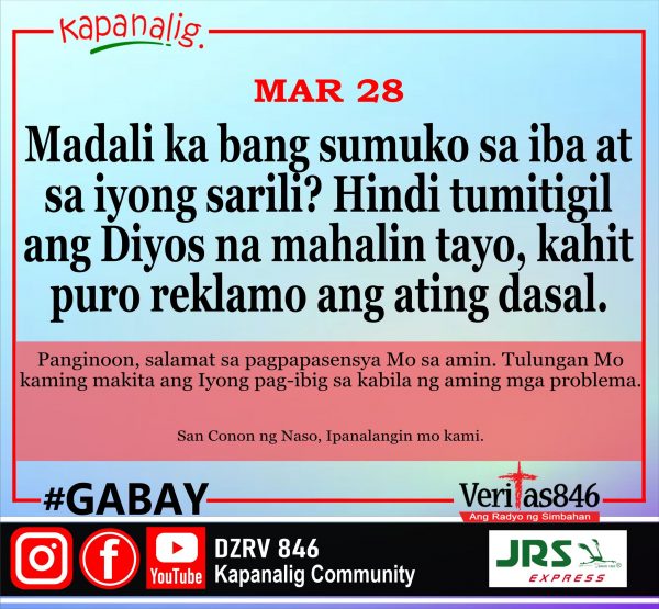 524 total views Martes sa Ika-5 Linggo ng Apatnapung Araw na Paghahanda MASS PRESIDER: Rev. Fr. Robert Leus [fb_plugin video href=https://www.facebook.com/DZRV846/videos/924153755299498] [give_form id=”72114″ show_title=”true” show_goal=”false” show_content=”none”