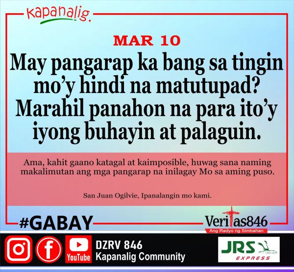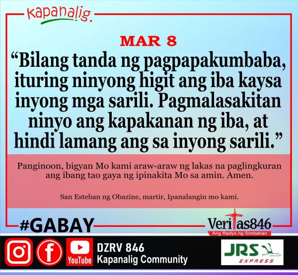 654 total views Martes sa Ika-2 Linggo ng Apatnapung Araw na Paghahanda MASS PRESIDER: Rev. Fr. Rusty Aggabao [fb_plugin video href=https://www.facebook.com/DZRV846/videos/1350005662515516] [give_form id=”72114″ show_title=”true” show_goal=”false” show_content=”none”