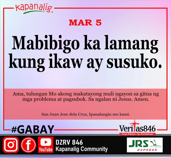 662 total views Lunes sa Ikalawang Linggo ng Apatnapung Araw na Paghahanda (A) MASS PRESIDER: Rev. Fr. Benjo Fajota [fb_plugin video href=https://www.facebook.com/DZRV846/videos/214694754416178] [give_form id=”72114″ show_title=”true” show_goal=”false”