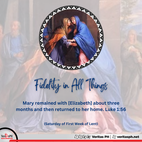 701 total views Dearest Mother, your fidelity to Elizabeth during those three months set a beautiful example of care, concern and service. Help me to follow