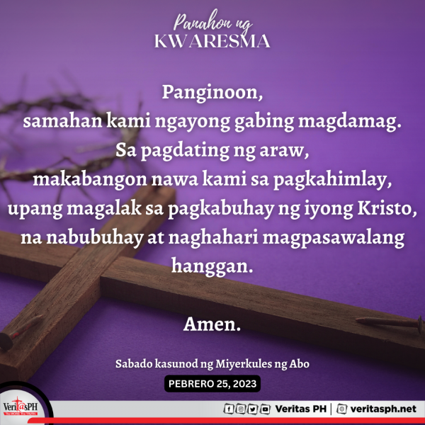 2,013 total views “๐ท๐๐๐๐๐๐๐๐๐ ๐บ๐ 40 ๐จ๐๐๐ ๐ต๐ ๐ท๐๐๐๐๐๐๐๐ ๐” Araw ng Sabado Kasunod Ng Miyerkules Ng Abo | Pebrero 25, 2023 #Kwaresma2023 #VeritasPH