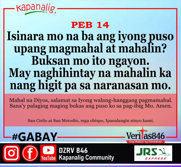 502 total views Paggunita kina San Cirilo, Monghe at San Metodio, Obispo MASS PRESIDER: Rev. Fr. Roel Aldwin Valmadrid [fb_plugin video href=https://www.facebook.com/DZRV846/videos/1714826382287461] [give_form id=”72114″ show_title=”true” show_goal=”false”