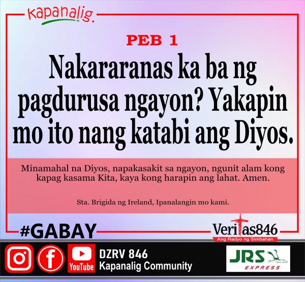 394 total views Miyerkules ng Ika-4 na Linggo sa Karaniwang Panahon (I) MASS PRESIDER: Rev. Fr. Frederick Carlo Narvasa [fb_plugin video href=https://www.facebook.com/DZRV846/videos/512335924381542] [give_form id=”72114″ show_title=”true” show_goal=”false”
