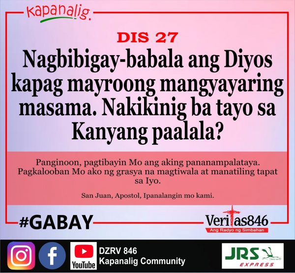 1,553 total views Kapistahan ni Apostol San Juan, Manunulat ng Mabuting Balita MASS PRESIDER: Rev. Fr. Christopher Labrador, O.Carm. [fb_plugin video href=https://www.facebook.com/DZRV846/videos/981811746138722] [give_form id=”72114″ show_title=”true” show_goal=”false”