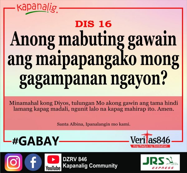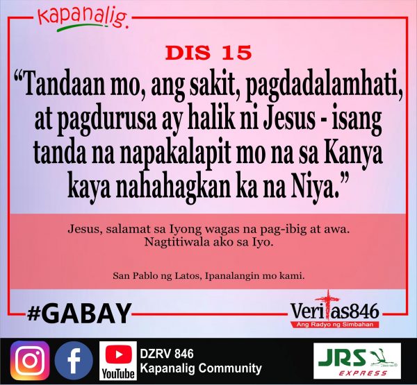 2,189 total views Ika-19 ng Disyembre (Simbang Gabi) Mga Hukom 13, 2-7. 24-25a Salmo 70, 3-4a. 5-6ab. 16-17 Lagi kong papupurihan ang iyong kapangyarihan. Lucas 1,