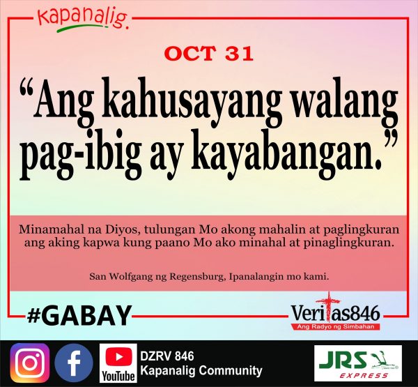 331 total views Lunes ng Ika-31 na Linggo sa Karaniwang Panahon (K) MASS PRESIDER: Rev. Fr. Raymond Tapia, BFP-CHS [fb_plugin video href=https://www.facebook.com/DZRV846/videos/868691014141482] [give_form id=”72114″ show_title=”true” show_goal=”false”