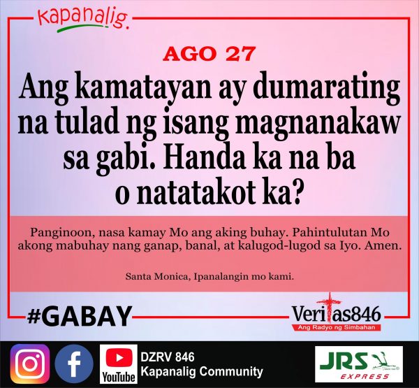 459 total views Ika-22 Linggo sa Karaniwang Panahon (K) MASS PRESIDER: Rev. Fr. Justine Kenneth Cainday III [fb_plugin video href=https://www.facebook.com/DZRV846/videos/795214351925714] [give_form id=”72114″ show_title=”true” show_goal=”false” show_content=”none” display_style=”onpage”]